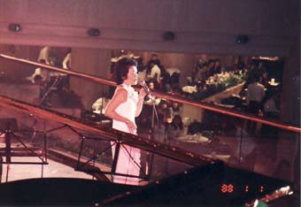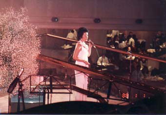 エントランスの1階と2階のらせん階段の踊り場がステージになり、私は立って歌のみのお仕事でした。
