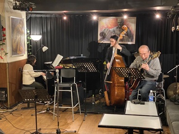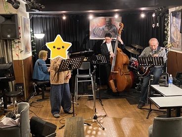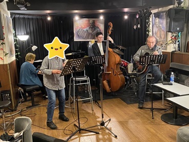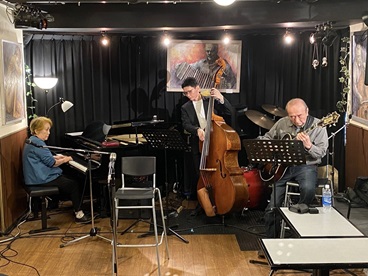 Workshop 2023年1月よりジャズ・ピアノ、ジャズ・ヴォーカルのワークショップを開催しております。 プロのミュージシャン=ベース、ギター、ドラム等での伴奏及びセッションができます。 どなたでも参加できますので、お気軽にご予約ください。 場所:横浜市中区太田町1-11-3 グリーンビル4F ライブハウス A.B.スマイル 参加費:¥5000(飲み物など持ちこみ可) 参加ご希望の方は立花までご予約をお願い致します。 次回は2026年4月14日(火)14:00〜16:00です。 guitar:遠藤光夫 bass:日向克典 piano:立花保子 2026年2月24日(火)のワークショップの写真を A.B.スマイルのオーナー山本さんから頂きました。